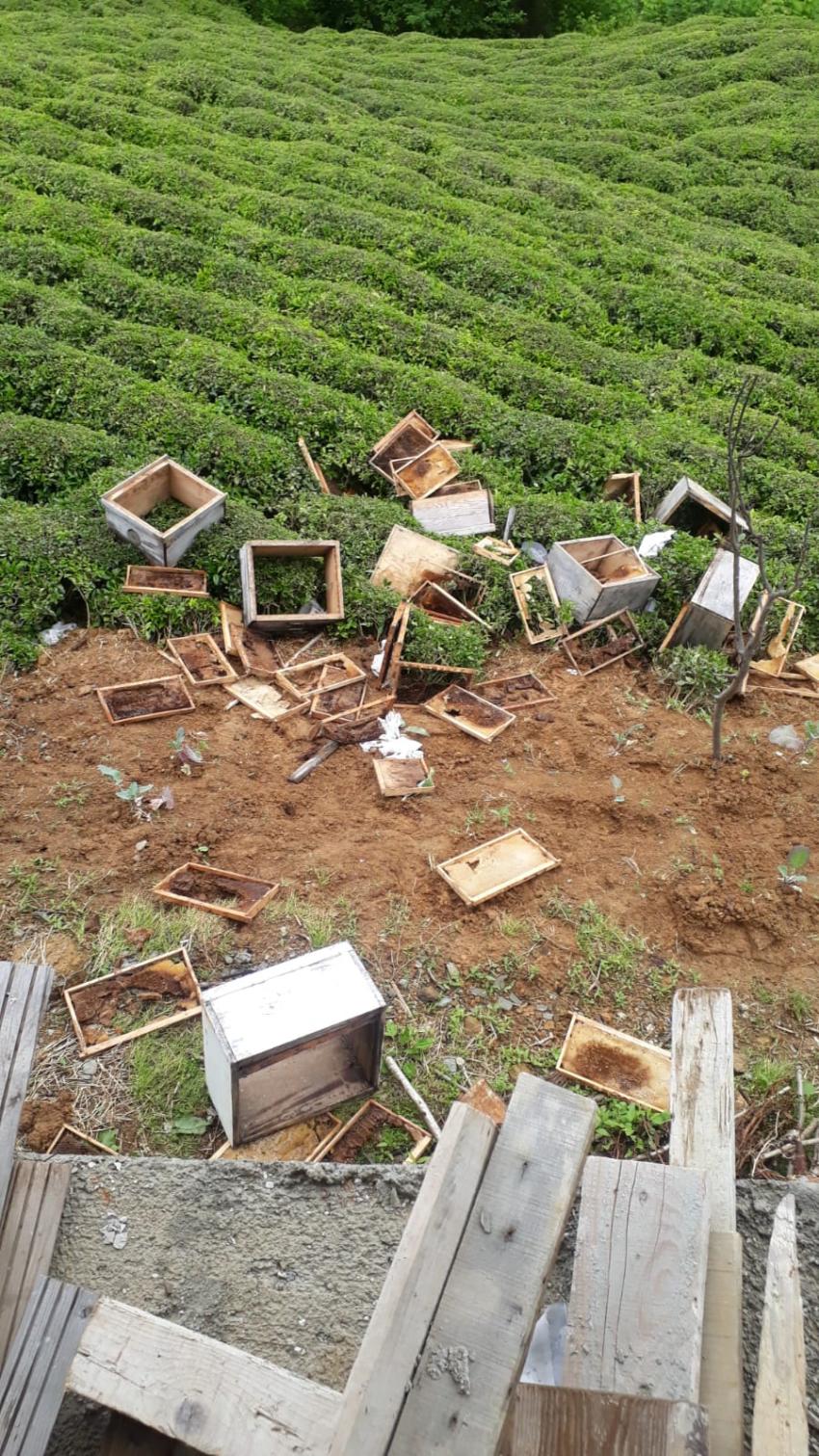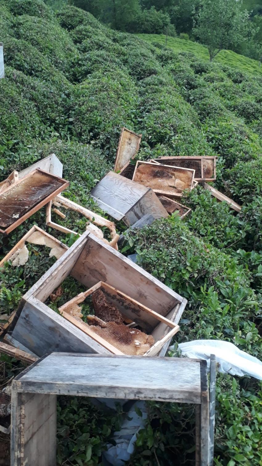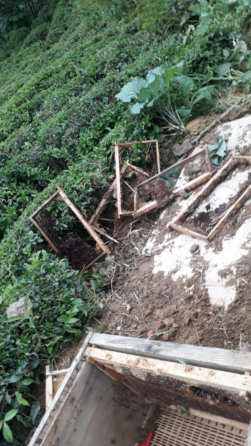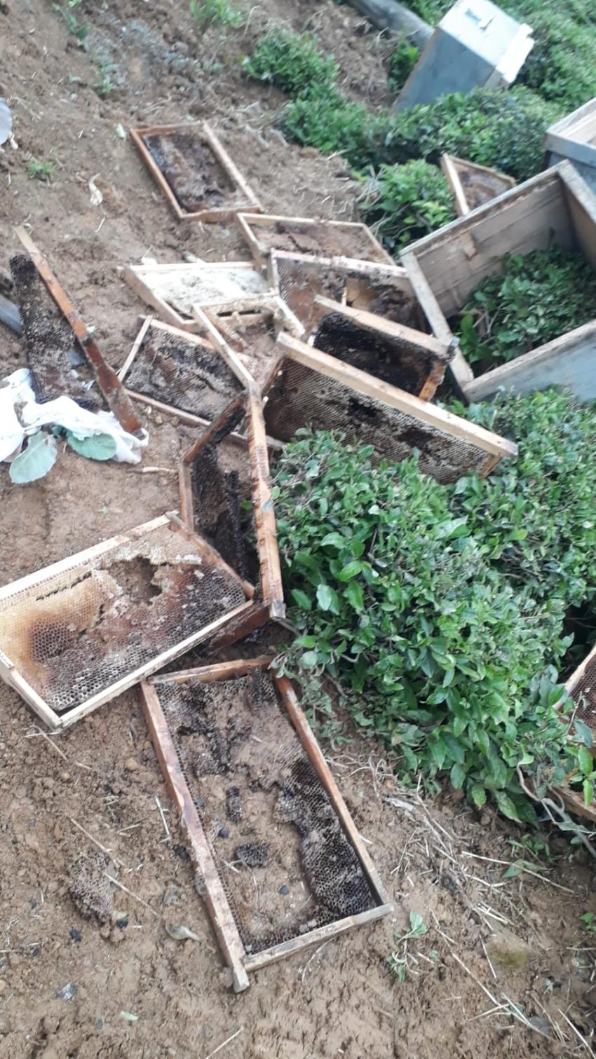 Arhavi’de aç kalan ayılar kovanları parçaladı.