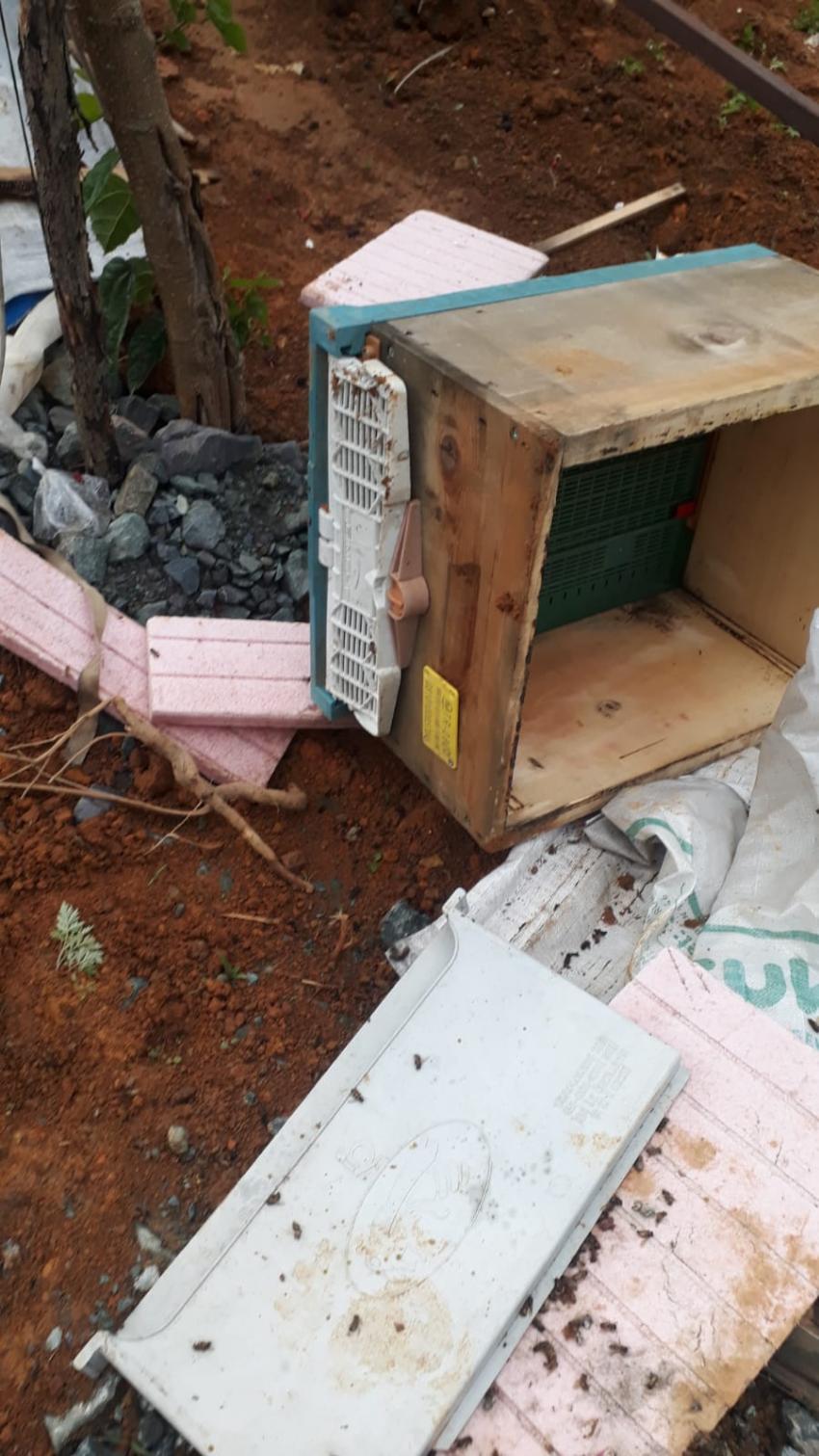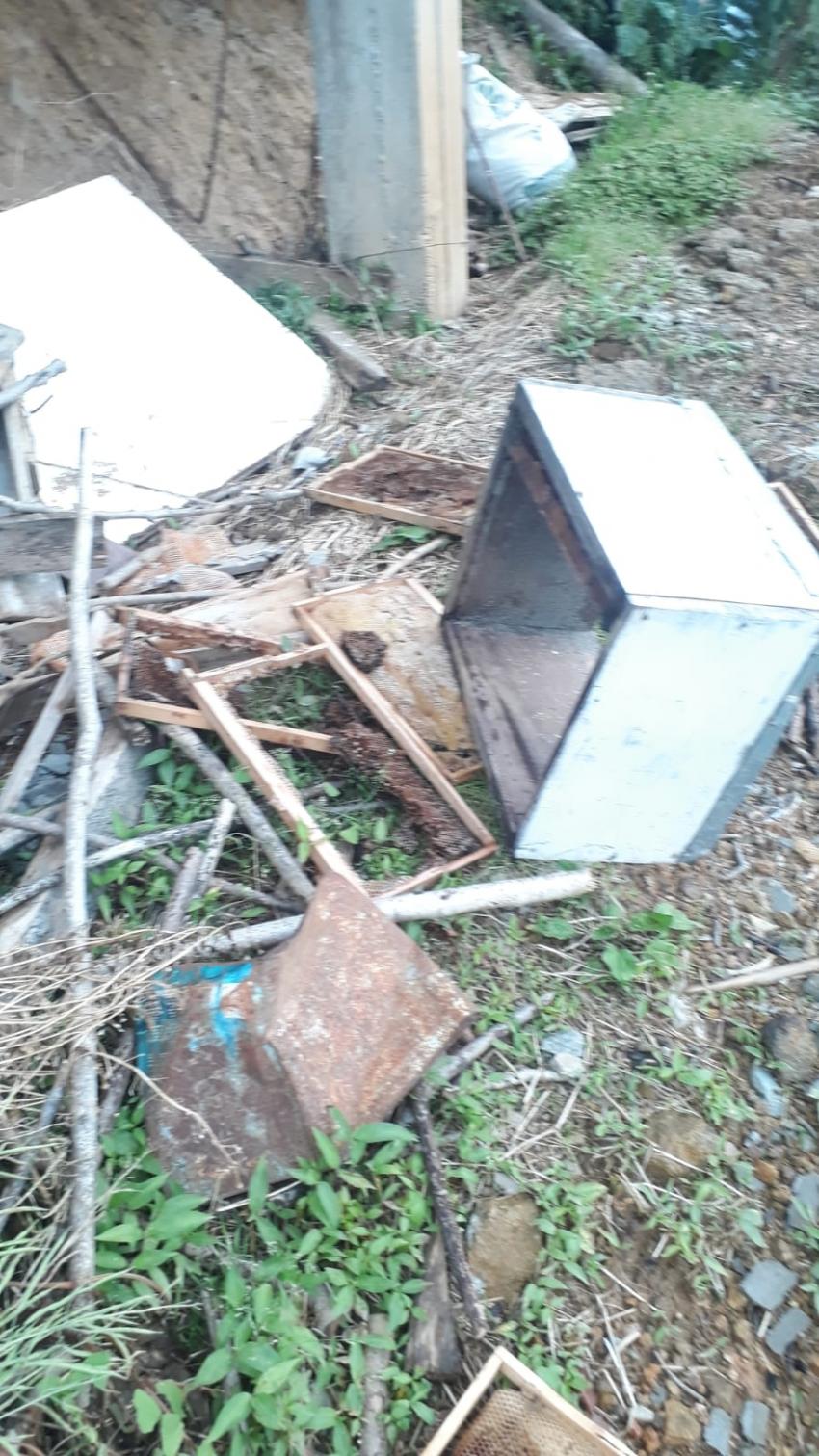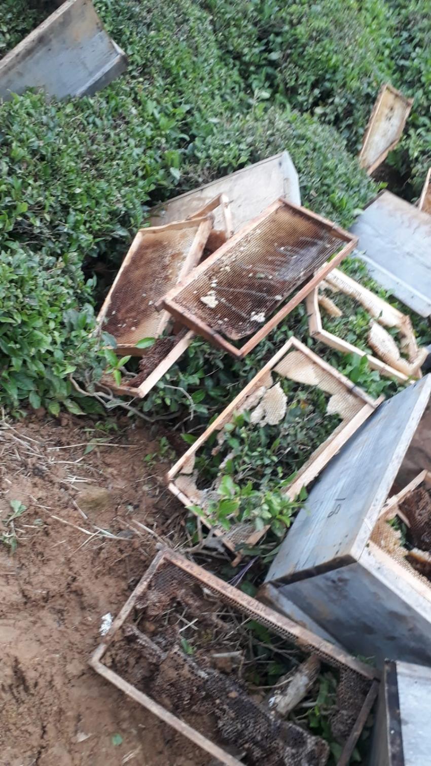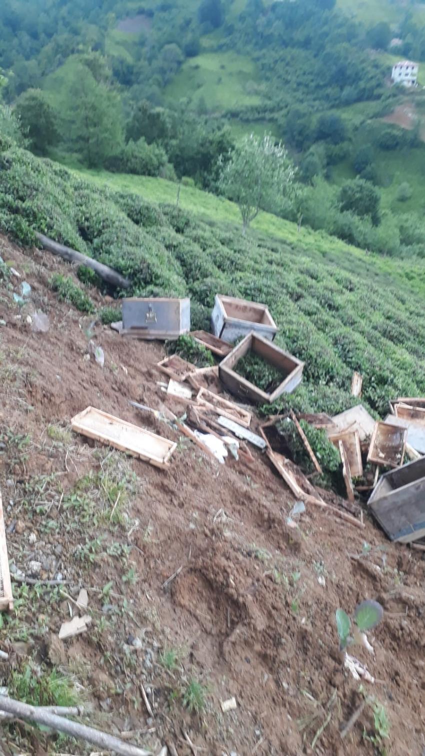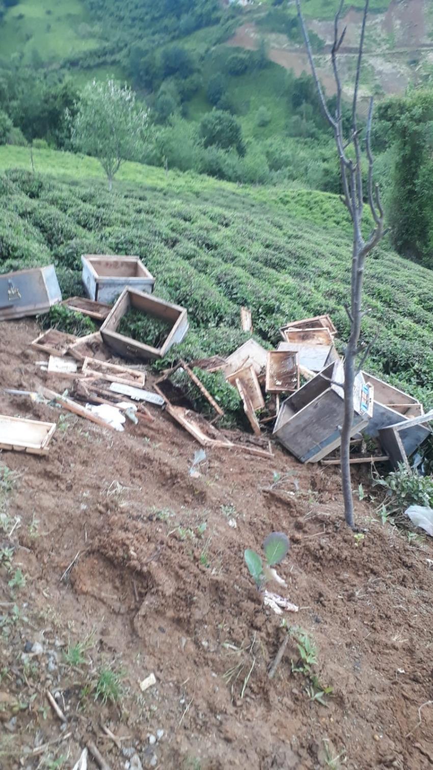 Arhavi’de aç kalan ayılar kovanları parçaladı.