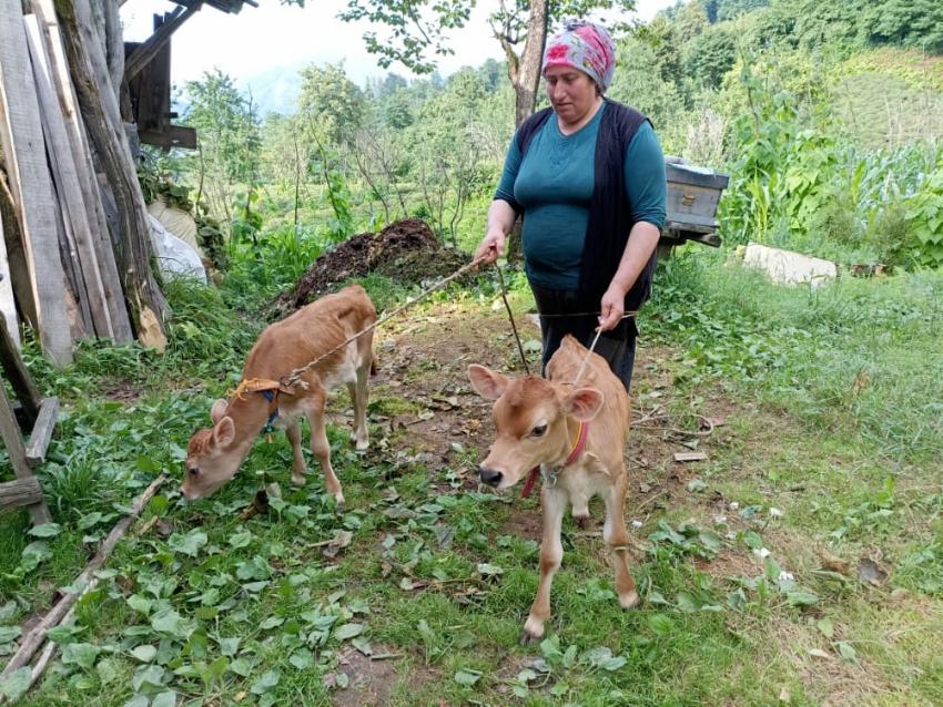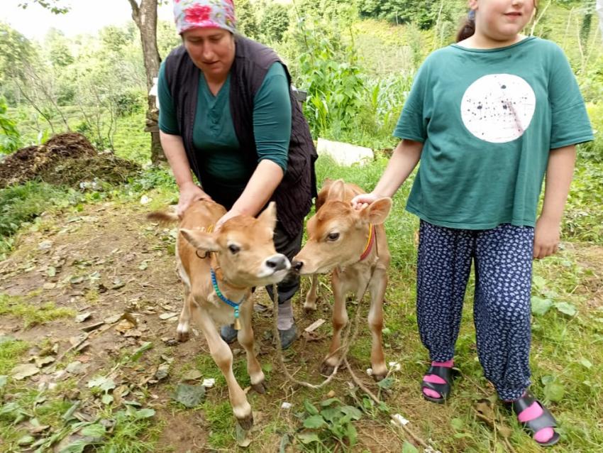 Arhavi’de (Durmat) Ulaş Köyü'ünde yaşayan Neşe ve Turan Akgüner ineği binde 2 ihtimali gerçekleştirdi ve ikiz buzağı doğurdu.