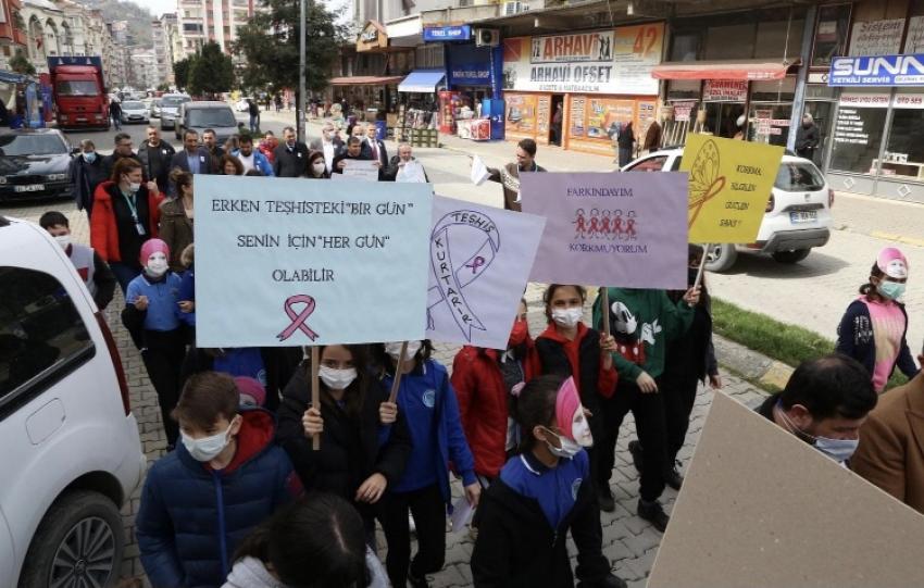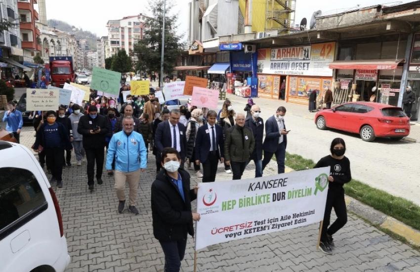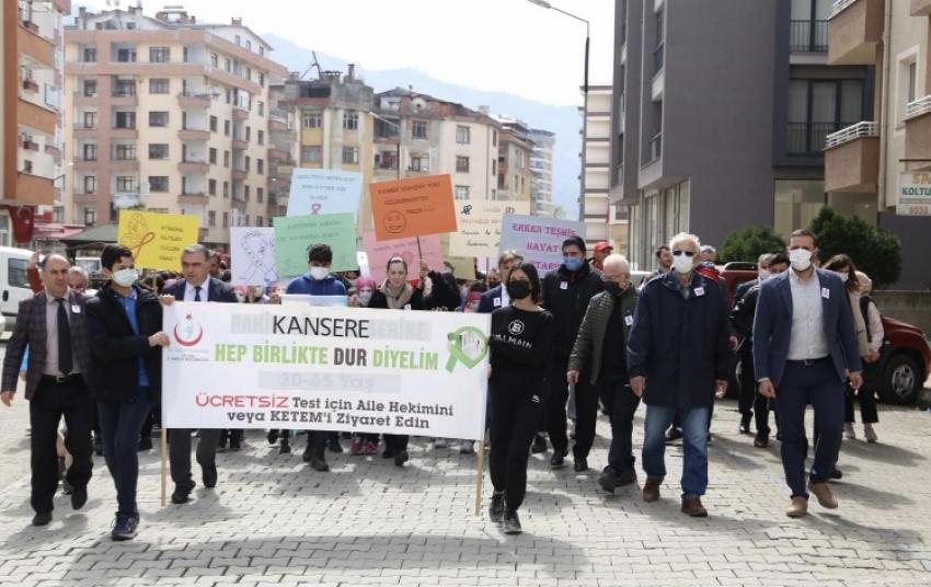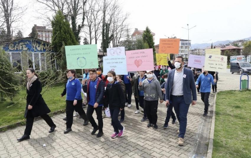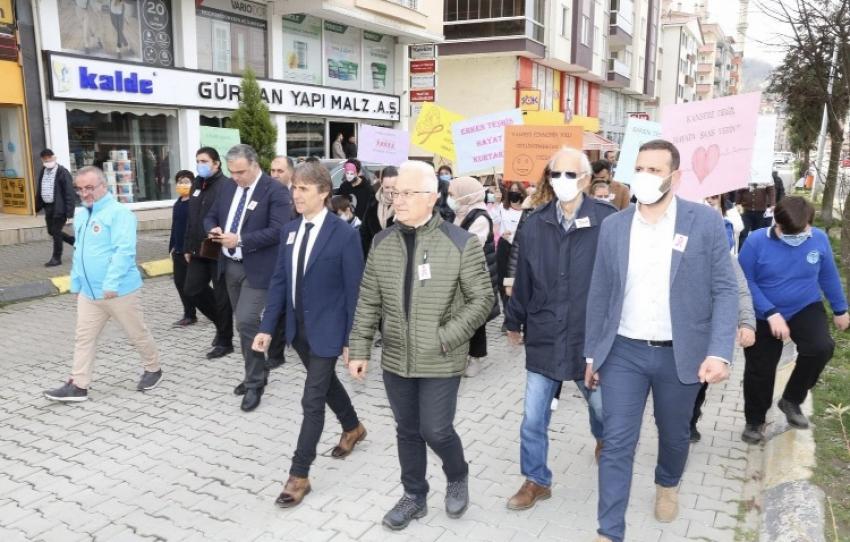 “Kansere Hep Birlikte Dur Diyelim” sloganıyla FSM Ortaokulu’ndan başlayan yürüyüşte öğrencilerin hazırladıkları pankart ve dövizler dikkat çekti. Yürüyüş ilçe merkezinden geçilerek Toplum Sağlığı Merkezi önünde tamamlandı.