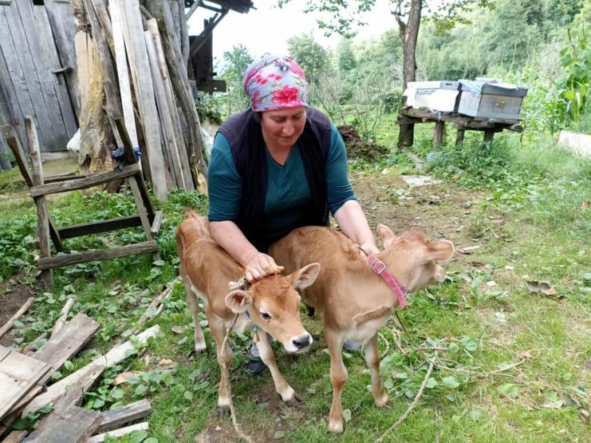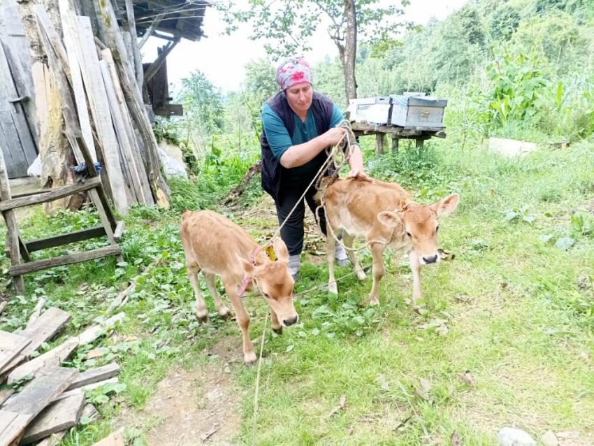 Arhavi’de ikiz doğuran inek sahibini sevindirdi.