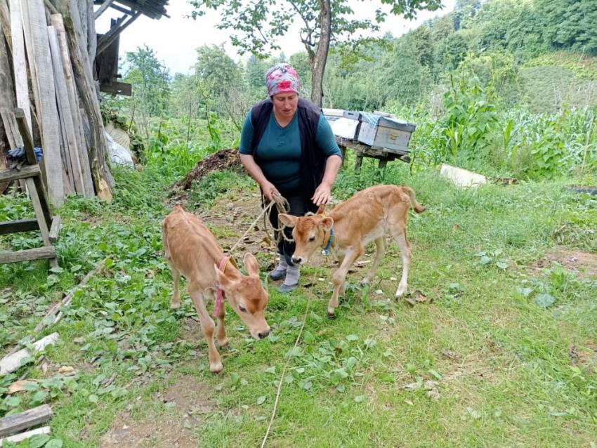 Arhavi’de (Durmat) Ulaş Köyü'ünde yaşayan Neşe ve Turan Akgüner ineği binde 2 ihtimali gerçekleştirdi ve ikiz buzağı doğurdu.