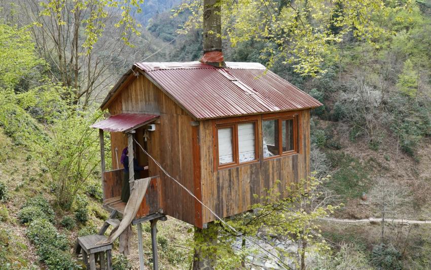 Mençuna Şelalesi'nin içinde yer aldığı doğal güzellikleriyle ünlü Kamilet Vadisi'nde yaşayan ve çiftçilikle uğraşan aile, kendi arazilerine yer alan bir gürgen ağacının üzerine ahşaptan ağaç ev yaptılar. Bu sayede hem gençlik hayallerini gerçekleştirdiler, hem de gelen misafirlere ağaç evde ağırlama imkanına kavuştular.