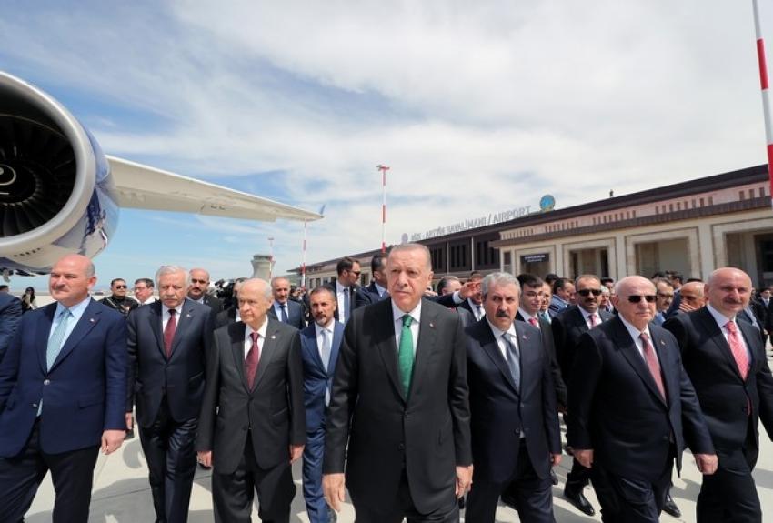 Türkiye'nin deniz üzerine dolgu yapılarak inşa edilen ikinci havalimanı olan Rize-Artvin Havalimanı, hizmete açıldı. Cumhurbaşkanı Recep Tayyip Erdoğan, özel uçak "TUR" ile açılışını yapacağı Rize-Artvin Havalimanı'na geldi. Cumhurbaşkanı Erdoğan, uçağın kokpitinden havalimanını inceledi. Açılışa Cumhurbaşkanı Recep Tayyip Erdoğan ve Azerbaycan Cumhurbaşkanı İlham Aliyev’in yanı sıra Milliyetçi Hareket Partisi Genel Başkanı Dr. Devlet Bahçeli ve Büyük Birlik Partisi (BBP) Genel Başkanı Mustafa Destici de katılıyor. Cumhurbaşkanı Recep Tayyip Erdoğan, Rize-Artvin Havalimanı'na ilişkin, "Ülkemizin sınırlarının en uç noktasına kurduğumuz bu havalimanı, insanımıza vakitten yakıta, trafik kazalarından emisyon gazı azaltımına kadar pek çok alanda katkı sağlayacaktır." dedi. Cumhurbaşkanı Erdoğan, Rize-Artvin Havalimanı Açılış Töreni'nde yaptığı konuşmaya, tüm katılımcıları selamlayarak başladı. Türkiye'nin iftihar verici eserleri arasındaki yerini alan Rize-Artvin Havalimanı'nın hayırlı olmasını dileyen Erdoğan, Azerbaycan Cumhurbaşkanı İlham Aliyev, MHP Genel Başkanı Devlet Bahçeli ve BBP Genel Başkanı Mustafa Destici ile diğer katılımcılara teşekkür etti. Cumhurbaşkanı Erdoğan, eser ve hizmet siyasetlerinin son örneği olan bu havalimanının sıradan bir yatırım olmadığını belirterek, dünyada deniz üzerinde inşa edilen toplam 5 havalimanı olduğunu, bunlardan ikisinin Türkiye'de bulunduğunu anımsattı. Türkiye'deki havalimanı sayısını 26'dan 57'ye çıkardıklarını söyleyen Erdoğan, vatandaşların kendisiyle gurur duyduklarını söylemesi üzerine, "Ben sizlerle gurur duyuyorum. Rabbime hamdediyorum. Ya Rab, şahsıma ve heyetime bu millete hizmet etme şerefini bizlere bahşettiğin için sana hamdolsun." ifadelerini kullandı. - "Gurur verici bir eser oldu" Sıfırdan yapmışçasına yeniledikleri havalimanları da bulunduğunu anlatan Erdoğan, sözlerini şöyle sürdürdü: "Yaklaşık 5 yılda, 4,4 milyar liralık bir yatırımla tamamlanan Rize-Artvin Havalimanı 3 bin metrelik pisti, yıllık 3 milyon yolcu kapasiteli terminali, destek üniteleri ve diğer birimleriyle gerçekten gurur verici bir eser oldu. Ancak şu anda uçaklarımız boş gidip geliyor. Şimdi buradan Rizeli hemşehrilerime sesleniyorum, Artvinli hemşehrilerime sesleniyorum, bu uçaklar boş gidip gelirse bu tabii ne Rizeli'ye yakışır ne Artvinli'ye yakışır. Şu anda gerek uçak sayısı, gerekse bütün bu maliyetler bir şeyi ortaya koyuyor, demek ki Rizeli hemşehrilerim, Artvinli hemşehrilerim, bu uçakları doldurmalı ki ona göre de bu gidiş gelişler çok daha farklı bir şekilde devam etsin." Cumhurbaşkanı Erdoğan, havalimanındaki binaların giriş kapısından kulesine kadar tüm mimarisinin bölgenin özelliklerine uygun şekilde tasarlandığını ve yapıldığını belirterek, şöyle devam etti: "Türkiye'nin kalkınmada ve özellikle de hava yolu ulaşımında son 20 yılda katettiği mesafenin sembolü olarak gördüğüm bu eser, ne dağların ne denizlerin bizim hizmet azmimizin önünde duramayacağının işaretidir. Doğu Karadeniz'in gerçekten zorlu coğrafyasında inşa ettiğimiz Rize-Artvin Havalimanı komşumuz Gürcistan'ın ulaşımını da kolaylaştıracaktır. Ülkemizin sınırlarının en uç noktasına kurduğumuz bu havalimanı, insanımıza vakitten yakıta, trafik kazalarından emisyon gazı azaltımına kadar pek çok alanda katkı sağlayacaktır. Bu topraklarda yaşayanlar ve sılayırahim için ziyarete gelenler yanında bölgenin güzelliklerini görmek isteyen herkese Rize, Artvin artık bir uçak bileti mesafesindedir." "Sen orada ben burada, biraz yakın olalım / Dal ile asma gibi birbirine sarılalım / Gel ha böyle, gel ha böyle bu yana bir şey diyeyim sana / Sevdan öldürdü beni, kül oldum yana yana" dizelerini aktaran Erdoğan, "Artık Rize'de, Artvin'de türküler ayrılık değil kavuşma üzerine, muhabbet üzerine söylenecek." diye konuştu. Sadece bununla kalmadıklarını ve son 20 yılda Rize'ye 25 milyar lira tutarında yatırım yaptıklarını dile getiren Erdoğan, şunları söyledi: "Eğitimde inşa ettiğimiz iki bin adet yeni dersliğin yanında bugün 16 bin öğrencinin öğrenim gördüğü üniversitemizi şehrimize kazandırdık. Üniversite öğrencilerimiz için 5 bin 500 kişi kapasiteli yükseköğrenim yurt binaları açtık. Toplam 92 adet spor tesisi yaptık. İhtiyaç sahibi hemşehrilerimize toplam 1,1 milyar lira tutarında sosyal yardım aktardık. Sağlıkta, toplamda 911 yataklı hastanelerin de aralarında bulunduğu 28 sağlık tesisini şehrimize kazandırdık. TOKİ eliyle Rize'de 4 bin 918 konut projesini hayata geçirdik. Geçtiğimiz yıl üzücü bir sel felaketiyle karşı karşıya kalan Rize'mizde tüm afetzede kardeşlerimize eskisinden daha güzel köy konutları, evler ve çay alım merkezleri yapıyoruz." Güneysu Millet Bahçesi'ni yıl sonuna kadar vatandaşların hizmetine sunacaklarını dile getiren Erdoğan, bölünmüş yol uzunluğunu 20 kilometreden 190 kilometreye çıkardıklarını hatırlattı. - "Önemli çalışmalar yürütüyoruz" Ovit Tüneli ve bağlantı yolları, Hurmalık Tünelleri ve bağlantı yollarıyla, Salarha Tüneli'ni tamamlayarak hizmete sunduklarını söyleyen Erdoğan, şunları kaydetti: "Rize'nin turizm potansiyelini değerlendirmek ve tabiat turizmi potansiyelini ortaya çıkarmak için de önemli çalışmalar yürütüyoruz. Kaçkar Dağları Milli Parkı'nı halkımızın kullanımına açtık. Bölgemizi Karadeniz'in lojistik kavşak noktası ve üs bölgesi yapacak İyidere Lojistik Limanımızın da yapımı sürüyor. Son 20 yılda inşa ettiğimiz 68 taşkın koruma tesisiyle 121 yerleşim yeri ve 17 bin dekar araziyi taşkınlardan koruduk. Sanayide, şehrimize bir organize sanayi bölgesi ve 3 san